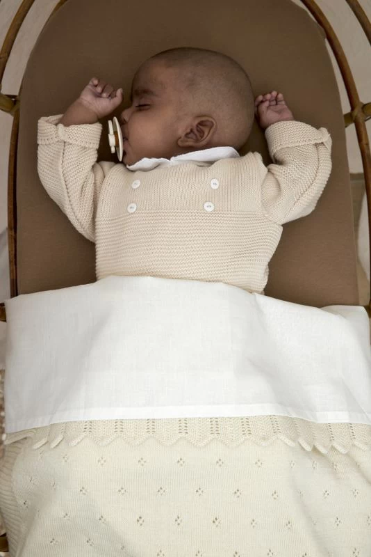 Under this Meyco Baby Blanket Ajour Wool, your little one will sleep well. The blanket is made of wonderfully soft 100% wool. Because the heat is regulated by the fabric, your child does not get too hot or too cold in bed. The Ajour pattern is subtle and gives a romantic and luxurious appearance. The blanket also has a luxurious knitted edge that gives the blanket the perfect finishing touch. The blanket is available in several calm, plain colors and therefore easy to mix and match with the rest of the Meyco Baby collection.