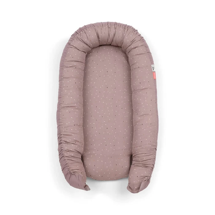 The light sand cozy nest is sprinkled with festive confetti on the inside and has a solid sand colour on the outside. The baby nest is made of soft cotton with polyester filling and has a soft one-piece foam mattress.
