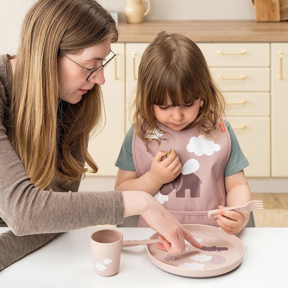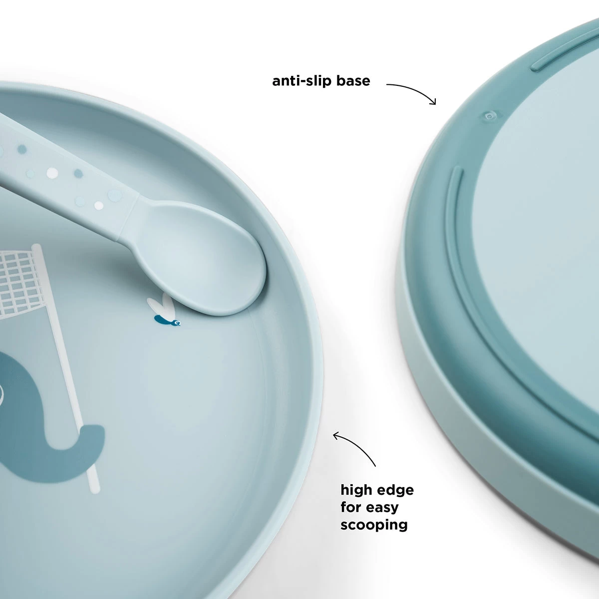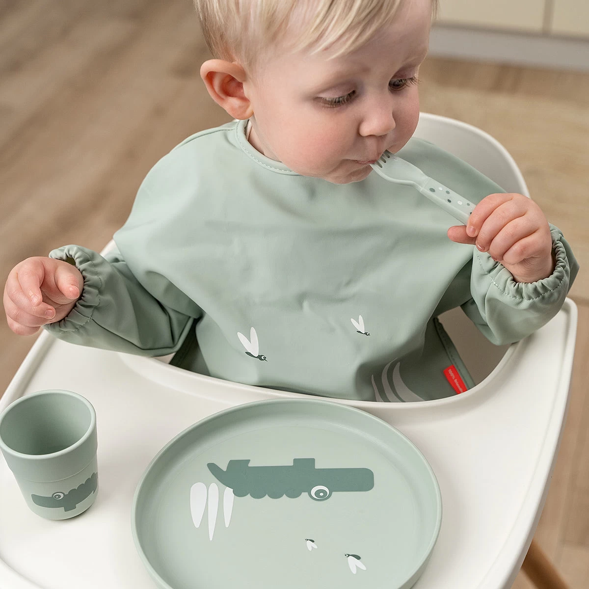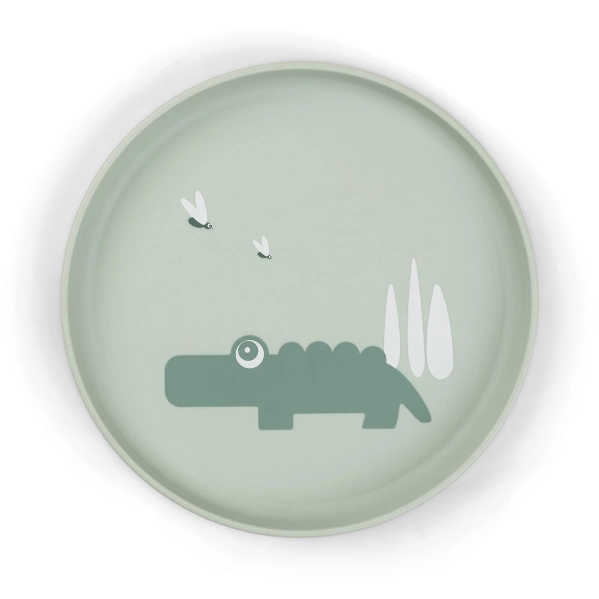 The green plate is printed with a cool motif of the warm-hearted crocodile Croco gazing at a couple of fireflies. Croco’s curiosity will inspire your child to explore the food on the plate. The base’s darker green adds a nice two-coloured detail.