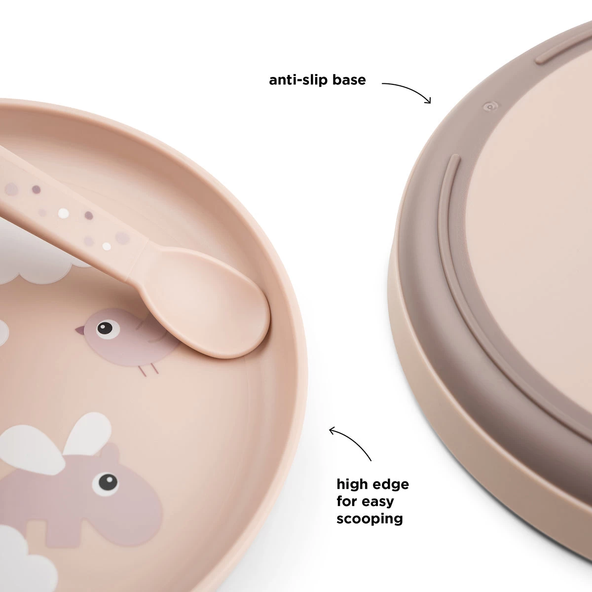 Let your little one enjoy a meal from this cute and practical Foodie plate. The playful print will bring joy to every meal. The high edge will help your child scoop up the food, while the practical anti-slip base makes sure the plate stays in place.