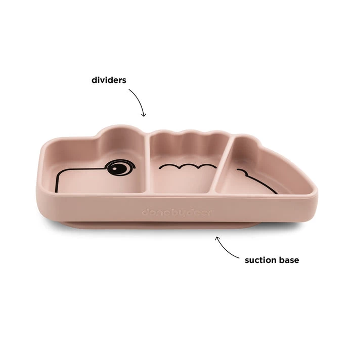 Croco is ready to make snack time fun! The stick & stay snack plate with three separate compartments will stay in place and help little eaters snack away.