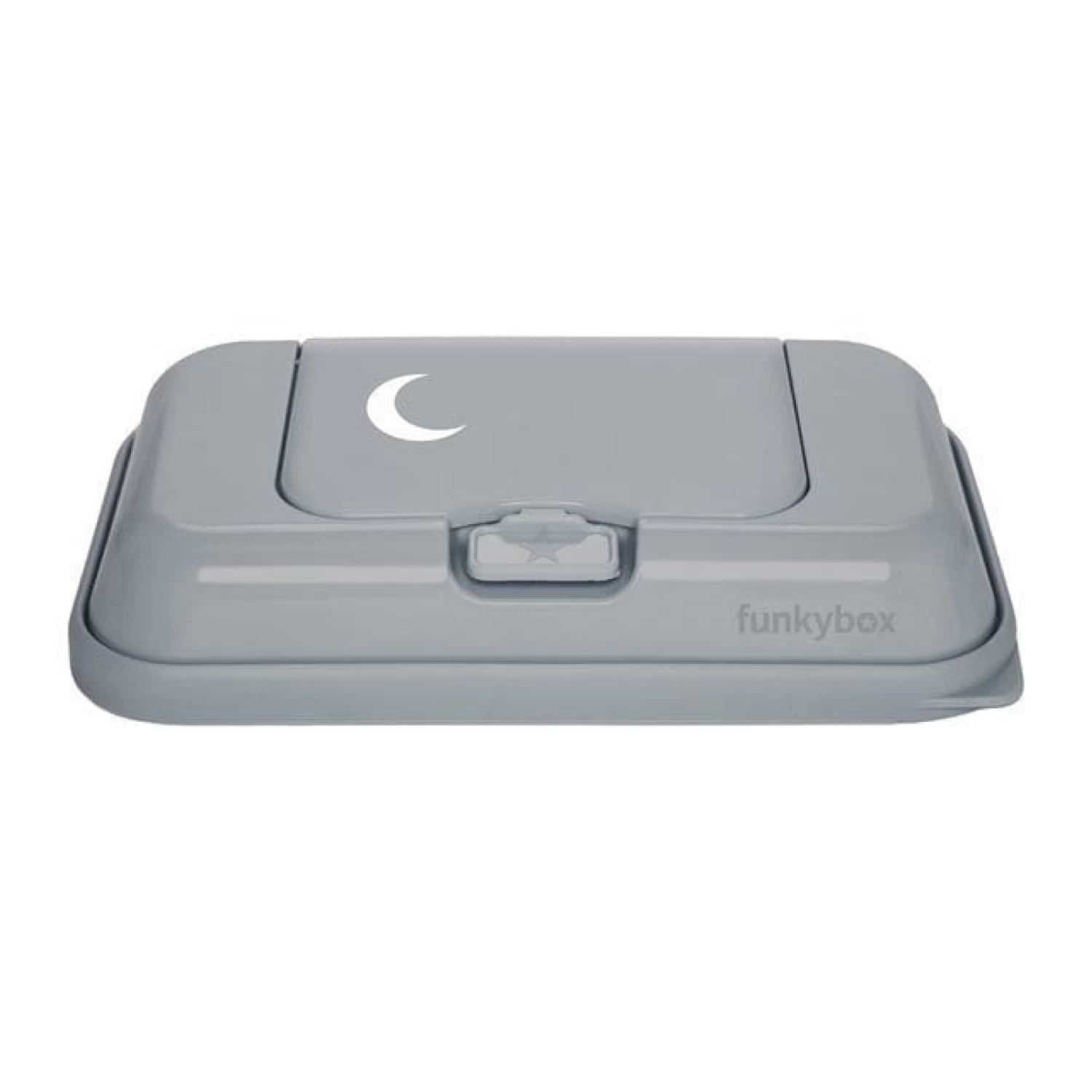 Funkybox is made of a high quality plastic. The lid of the box opens easy with one click on the button. The ring in the lid prevents the baby wipes from drying out. Easy for at home or on the go! Put Funkybox in the nursery, take it in your bag or keep one in your car.