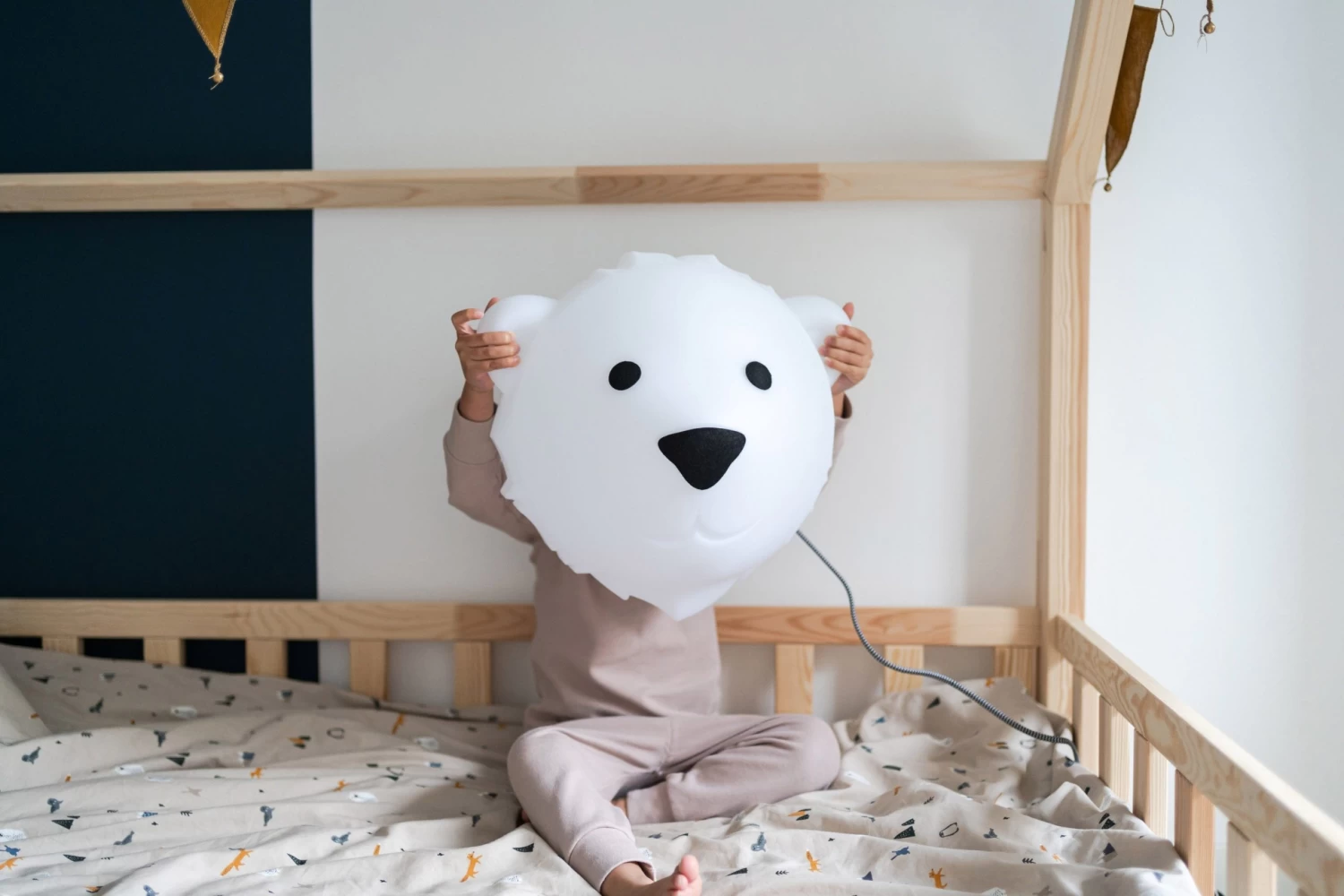 This medium size Björn lamp is turned on and off by the switch. The light is made of a hard and sturdy material, ideal for kids to play with.