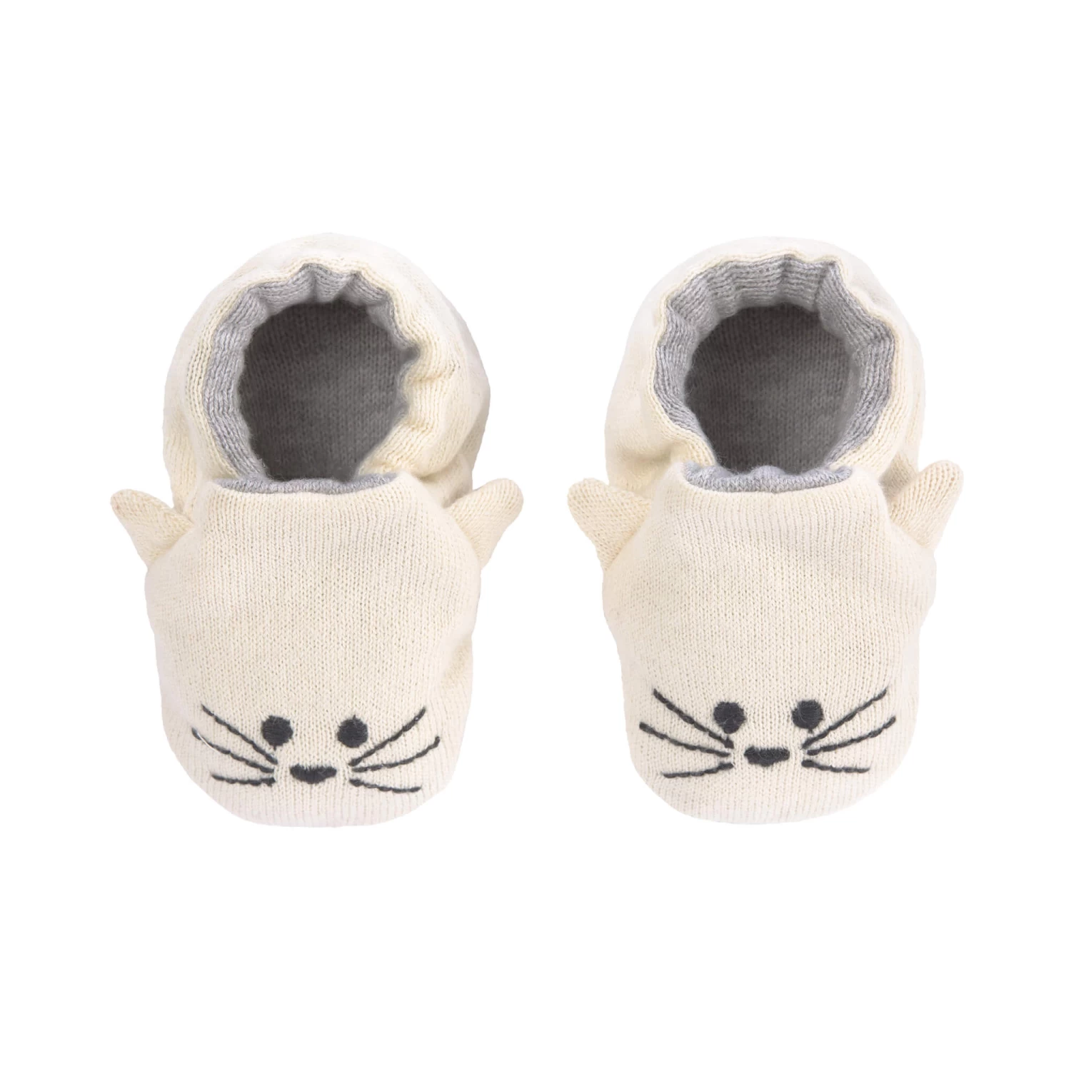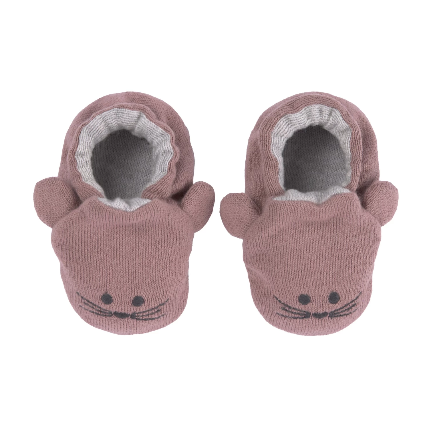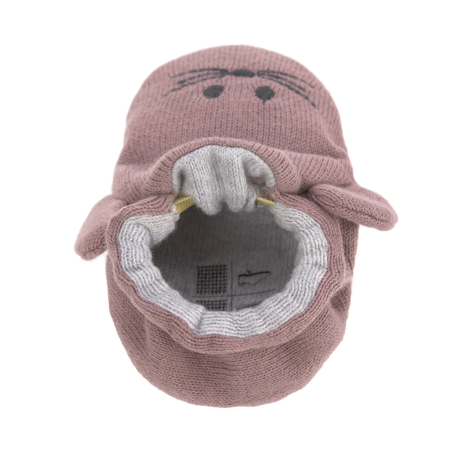 The little shoes are available in three different colors and are decorated with the cute embroidered faces of a dog, a cat or a mouse. Baby’s first shoes are machine washable at 86°F in the gentle cycle.