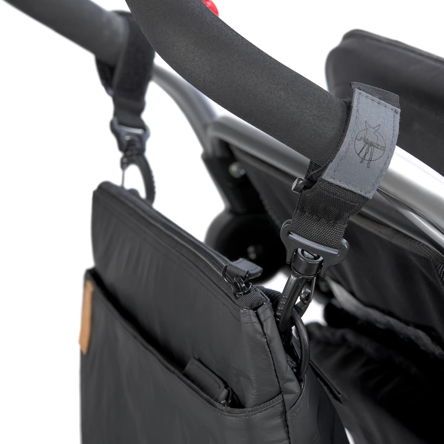 Modern, functional and compact. LÄSSIG’s sustainable buggy organizer and fanny pack Buggy Bum Bag Adventure is very versatile. Attached to the stroller, as a fanny pack, shoulder bag or cross-body, it’s the perfect accessory for active parents who also love carry their children. Thanks to the adjustable belt strap with clip closure the bags can easily be converted into whatever the situation requires.