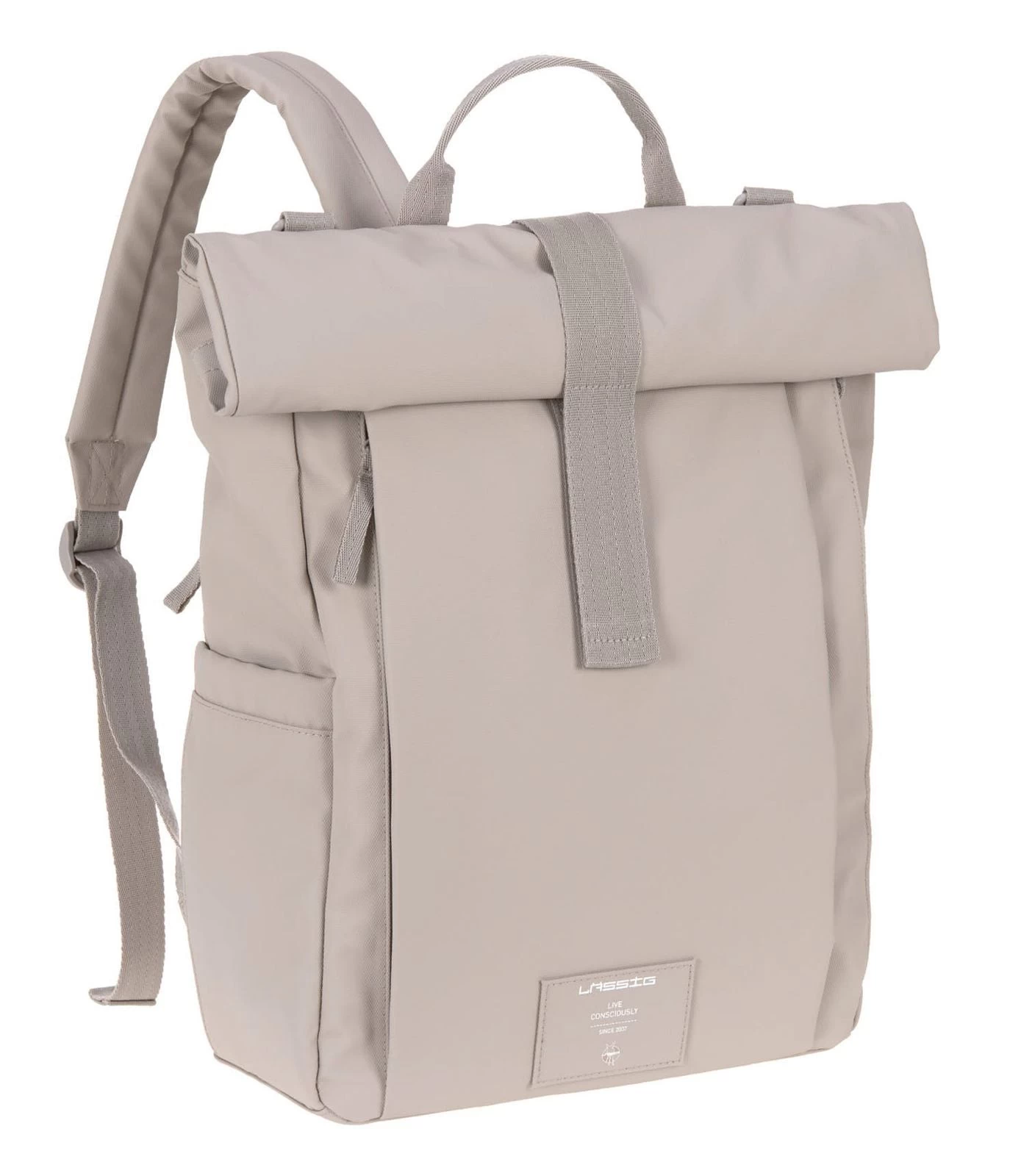 Quite flexible. LÄSSIG’s Rolltop Backpack Diaper bag from the Green Label collection impresses with its plain silhouette, sustainability and extra space.