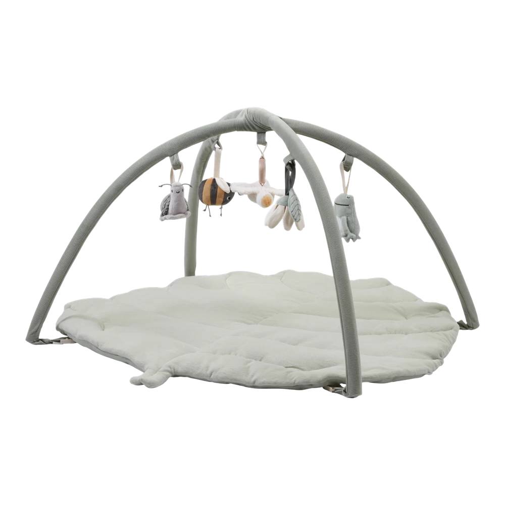 This soft, quilted activity play mat in the shape of a leaf is a great play area for babies. The cute little toys of Little Goose and his best friends on the arches encourage babies to touch and discover them. The toys are removable, so they can also be played with in the stroller.